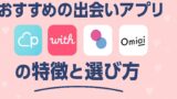 | Omiai | 真剣な交際を目指す社会人に人気。安全性の高いイエローカード制度あり。 | 安全性重視で落ち着いた出会いを求める人 | 20代後半〜30代 | 約3,900円〜 |